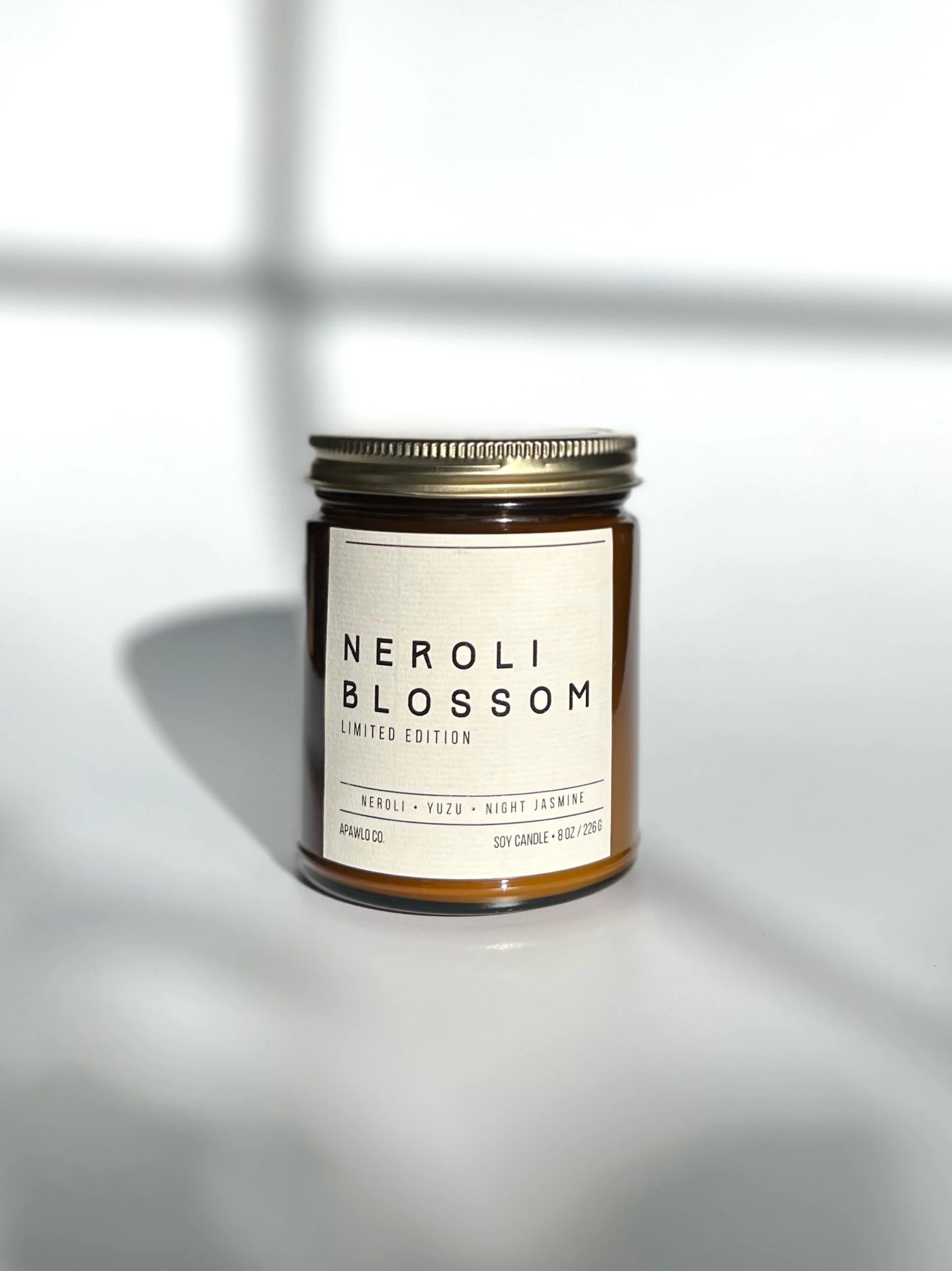 Made with an in-house custom blend of fragrance and essential oils, and are 100% soy wax, just like all of our candles. 8 ounces in an amber glass jar with gold-tone lid, these candles will provide approximately 60 hours of burn time and make a wonderful gift.